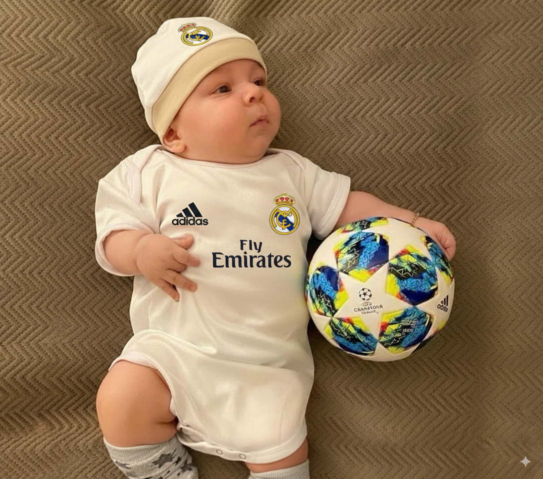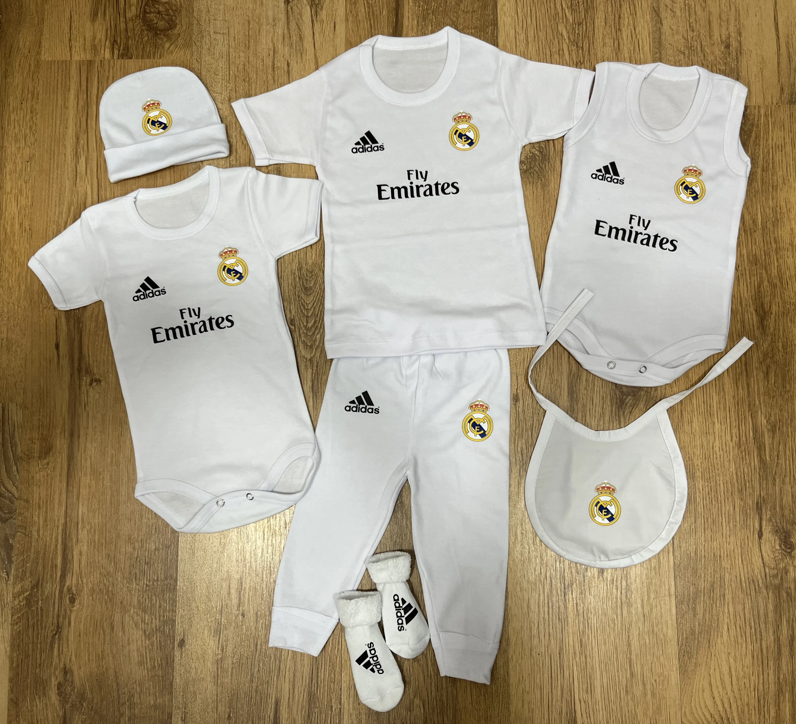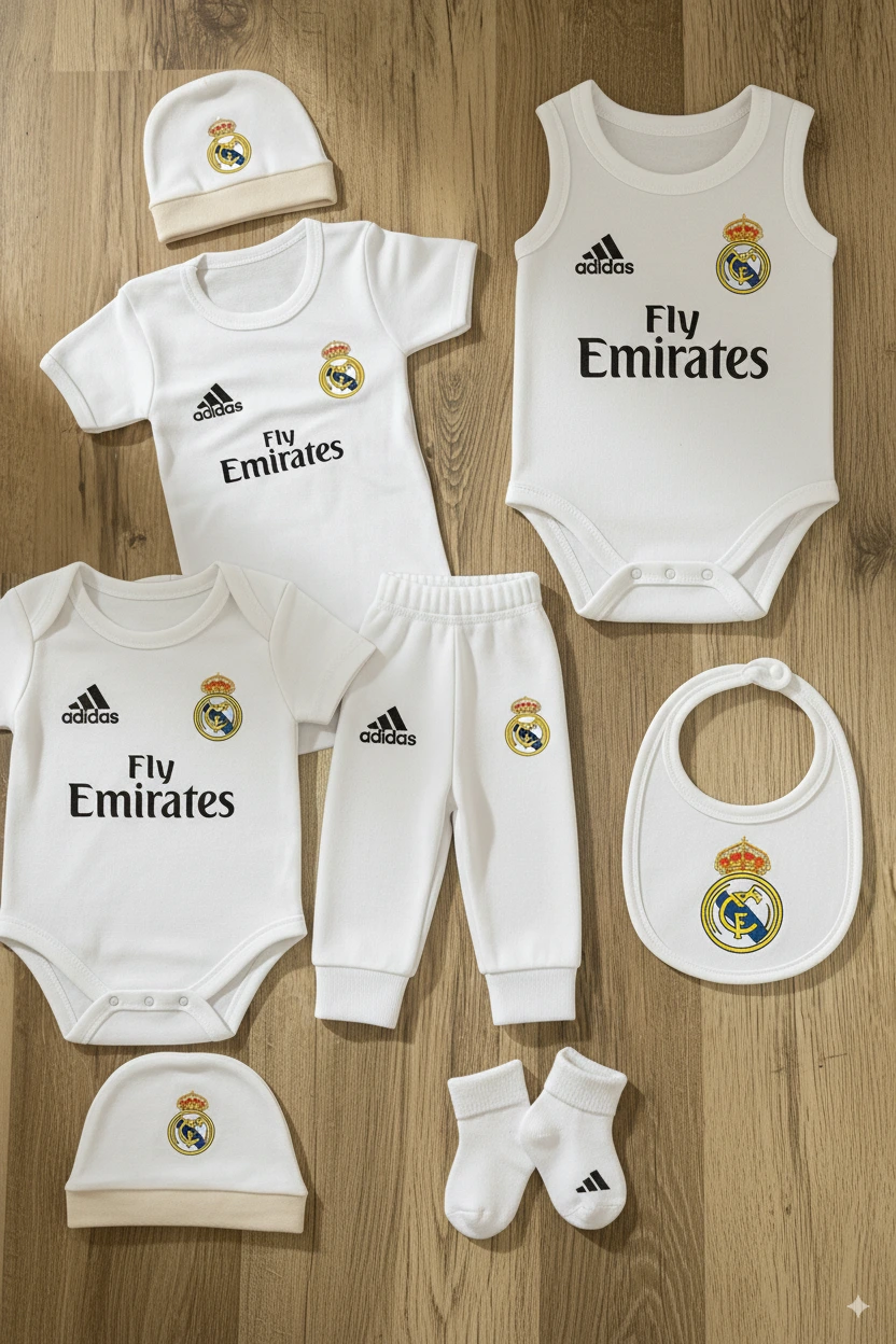 طقم رضّع فاخر مكوّن من 7 قطع بشعار ريال مدريد،